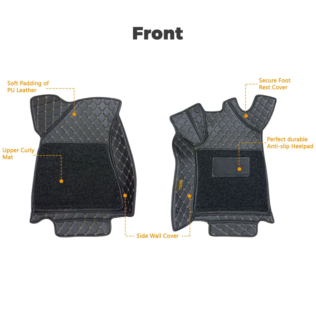 7D Economy Fitted Car Floor Mat for Petrol/Diesel/CNG Cars | 7D Layer Premium Protection | Leather + Curly Foot Mats | Heel Pad | Anti-Skid & Waterproof